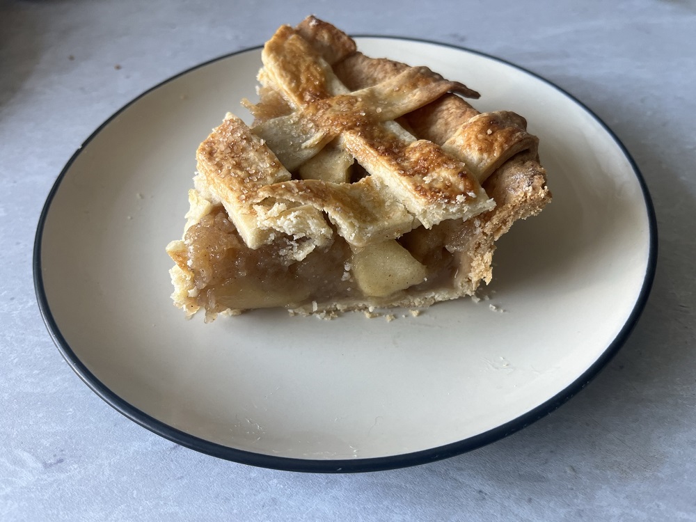 Once you’ve grated 900g of apple and heated it on the hob for 15 minutes, Thomas asks for the rest of the apple to be cut into chunks and mixed in, which I did. But somehow, despite 10 minutes on the hob and 45 minutes in the oven, the chunks of apple remained really hard – the hardest apple that I’ve seen to date on this project, I’m really not a fan of hard apple in apple pie/tart so this caused me some issues.
